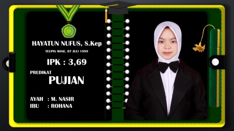 HAYATUN NUFUS, S.Kep TEUPIN MANE, 07 JULI 1999 IPK : 3,69 PREDIKAT PUJIAN AYAH : M. NASIR IBU : ROHANA