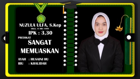 NUZULA ULFA, S.Kep SIGLI, 15 MEI 1999 IPK : 3,30 PREDIKAT SANGAT MEMUASKAN AYAH : HUSAINI HU IBU : KHALIDAH