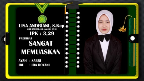 LISA ANDRIANI, S.Kep COT RAMBAT, 01 JANUARI 1998 IPK : 3,29 PREDIKAT SANGAT MEMUASKAN AYAH : SABRI IBU : IDA ROYANI