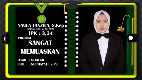 NAUFA TANZILA, S.Kep KRUENG MANE, 23 MEI 1999 IPK : 3,24 PREDIKAT SANGAT MEMUASKAN AYAH : M.JAFAR IBU : NURHAYATI, S.Pd