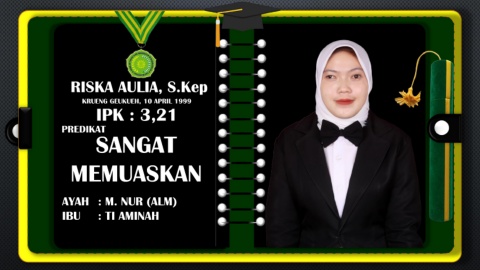 RISKA AULIA, S.Kep KRUENG GEUKUEH, 10 APRIL 1999 IPK : 3,21 PREDIKAT SANGAT MEMUASKAN AYAH : M. NUR (ALM) IBU : TI AMINAH