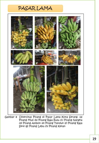 PASAR LAMA Gambar 8 Diversitas Pisang di Pasar Lama Kota Serang. (a) Pisang Muli (b) Pisang Raja Bulu (c) Pisang Nangka (d) Pisang Ambon (e) Pisang Tanduk (f) Pisang Raja Sere (g) Pisang Lebu (h) Pisang Ketan 19