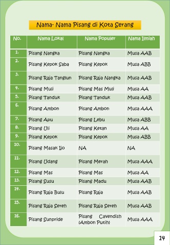 Nama- Nama Pisang di Kota Serang