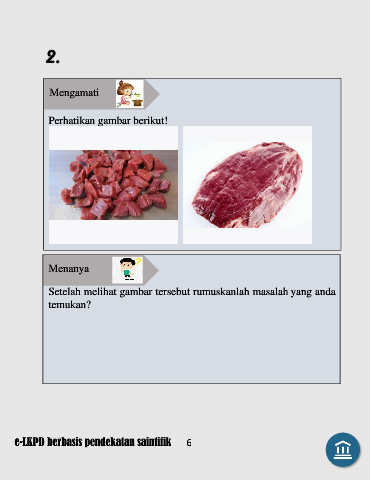 2. Mengamati Perhatikan gambar berikut! Menanya Setelah melihat gambar tersebut rumuskanlah masalah yang anda temukan? e-LKPD berbasis pendekatan saintifik 6