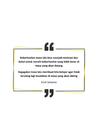 Keberhasilan masa lalu bisa menjadi motivasi dan bekal untuk meraih keberhasilan yang lebih besar di masa yang akan datang Kegagalan masa lalu membuat kita belajar agar tidak terulang lagi kesalahan di masa yang akan dating Erick Setianto
