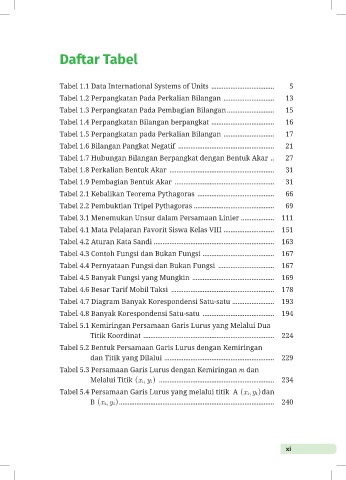 Tabel 1.7 Hubungan Bilangan Berpangkat dengan Bentuk Akar .. 27