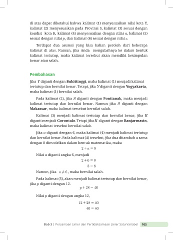 Bab 3 | Persamaan Linier dan Pertidaksamaan Linier Satu Variabel 105