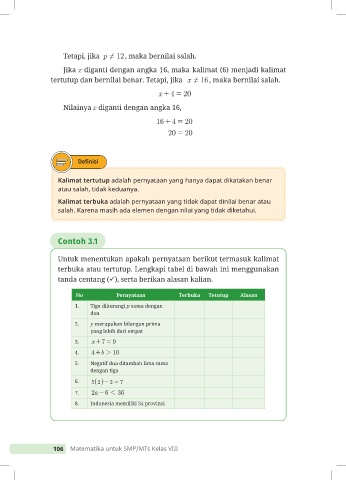 Tetapi, jika p ! 12, maka bernilai salah.