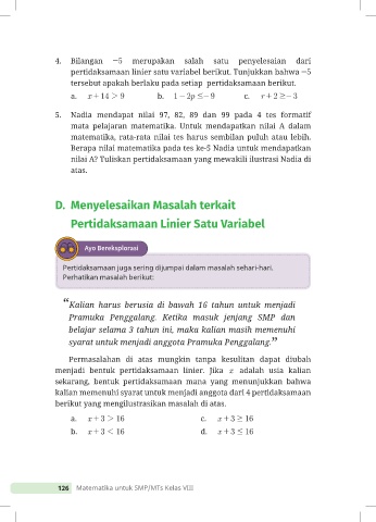 4. Bilangan -5 merupakan salah satu penyelesaian dari
