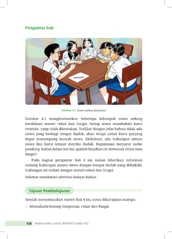 berdiskusi materi relasi dan fungsi. Setiap siswa menduduki kursi