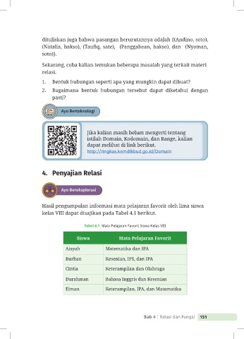 Tabel 4.1 Mata Pelajaran Favorit Siswa Kelas VIII