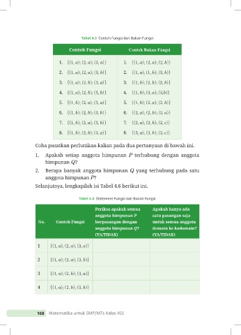 Tabel 4.3 Contoh Fungsi dan Bukan Fungsi