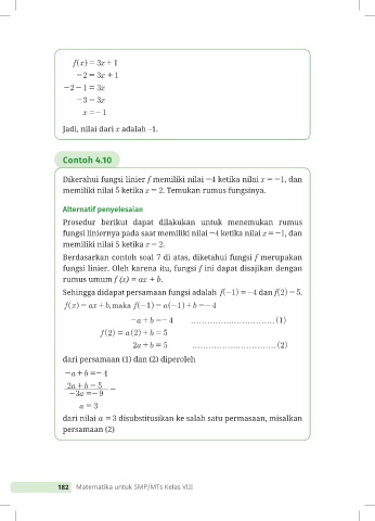 fungsi liniernya pada saat memiliki nilai -4 ketika nilai x = -1, dan