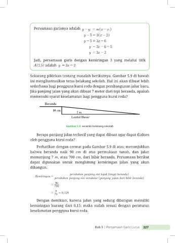 memanjang 7 m, atau 700 cm, dari bibir beranda. Persamaan berikut