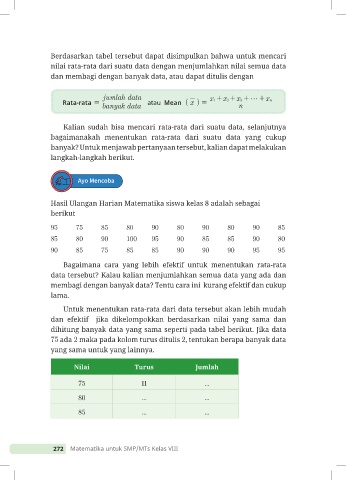 Untuk menentukan rata-rata dari data tersebut akan lebih mudah