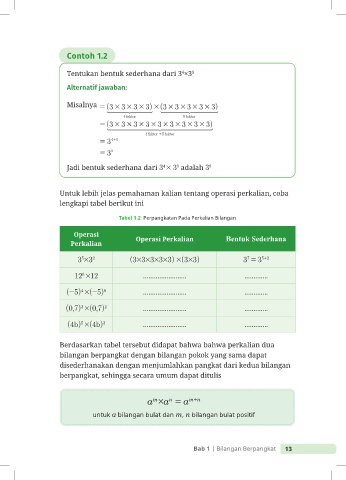 Tabel 1.2 Perpangkatan Pada Perkalian Bilangan