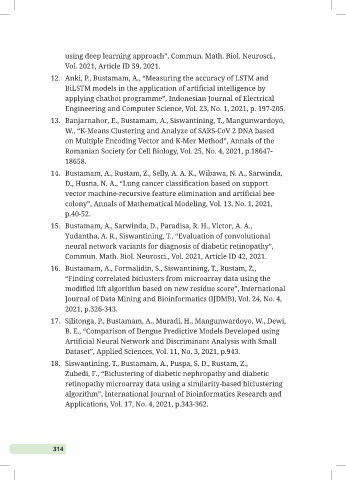 14. Bustamam, A., Rustam, Z., Selly, A. A. K., Wibawa, N. A., Sarwinda,