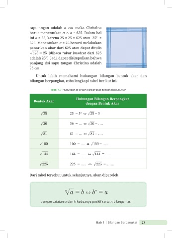Tabel 1.7 Hubungan Bilangan Berpangkat dengan Bentuk Akar