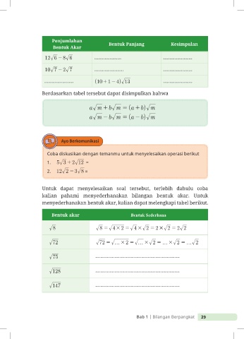 menyederhanakan bentuk akar, kalian dapat melengkapi tabel berikut.