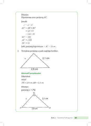 Jadi, panjang hipotenusa = AC = 13 cm .