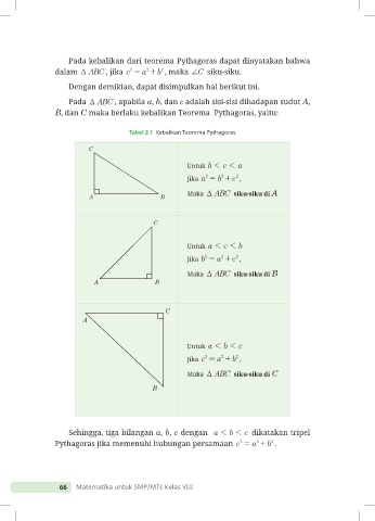 Tabel 2.1 Kebalikan Teorema Pythagoras