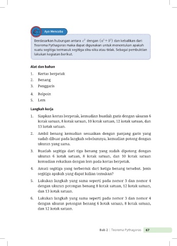 Teorema Pythagoras maka dapat digunakan untuk menentukan apakah