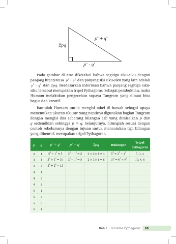 p - q 2 dan 2pq. Berdasarkan informasi bahwa panjang segitiga siku-