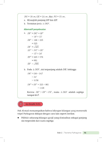 b. Pada T DEF , sisi terpanjang adalah DE. Sehingga