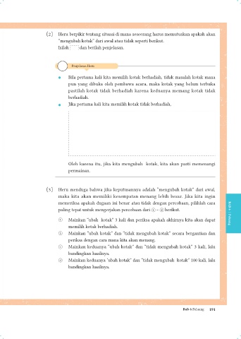 c Mainkan keduanya “ubah kotak” dan “tidak mengubah kotak” 3 kali, lalu