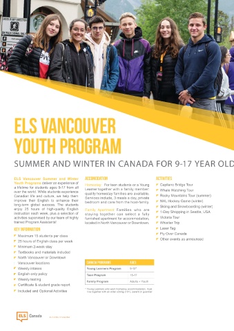 SUMMER AND WINTER IN CANADA FOR 9-17 YEAR OLDS In our lively ELS Winter Youth Programs, students study Ice Skating