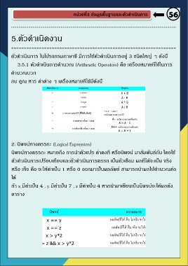 หน่วยที�3 ข้อมูลพื�นฐานและตัวดําเนินการ 56 หน่วยที�3 ข้อมูลพื�นฐานและตัวดําเนินการ 57