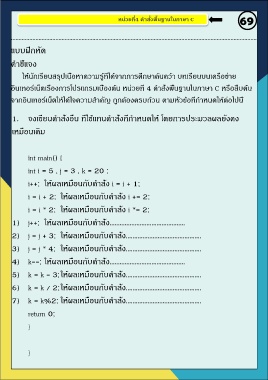 หน่วยที�4 คําสั�งพื�นฐานในภาษา C 68 หน่วยที�4 คําสั�งพื�นฐานในภาษา C 69