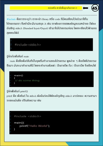อันเชิญ stdio.h (Standard Input/Ouput) เข้ามาในโปรแกรมก่อน โดยจะเขียนไว้ด้านบน