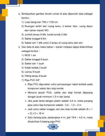 a. Berdasarkan gambar denah rumah di atas diperoleh data sebagai