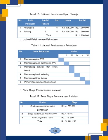 Tabel 10. Estimasi Kebutuhan Upah Pekerja
