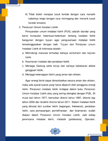 6) Tidak boleh melepas tusuk kontak dengan cara menarik