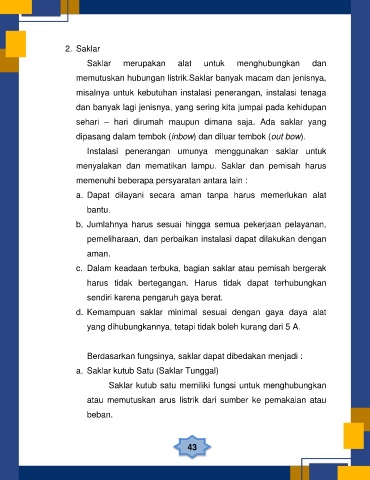 menyalakan dan mematikan lampu. Saklar dan pemisah harus