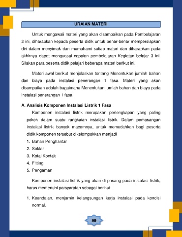 dan biaya pada instalasi penerangan 1 fasa. Materi yang akan