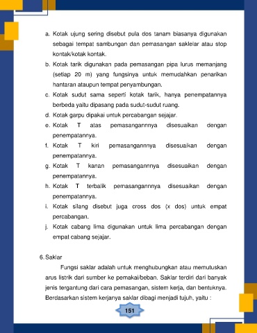 sebagai tempat sambungan dan pemasangan saklelar atau stop