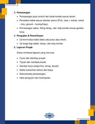 Pemasangan saklar, fitting lampu, dan stop kontak sesuai gambar