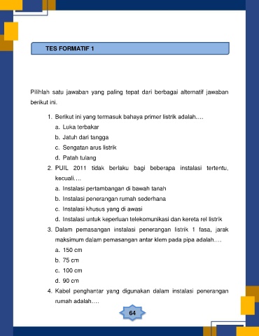 3. Dalam pemasangan instalasi penerangan listrik 1 fasa, jarak