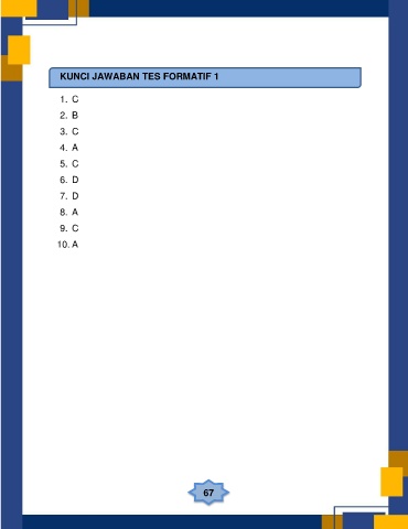 KUNCI JAWABAN TES FORMATIF 1 1. C 2. B 3. C 4. A 5. C 6. D 7. D 8. A 9. C 10. A 67