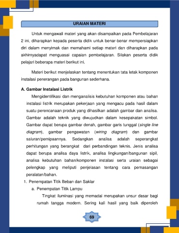 instalasi penerangan pada bangunan sederhana.
