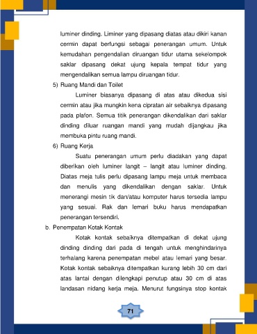 diberikan oleh luminer langit – langit atau luminer dinding.