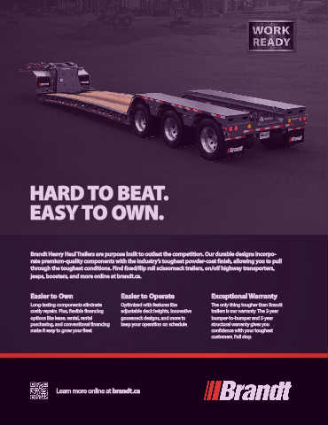Brandt Heavy Haul Trailers are purpose built to outlast the competition. Our durable designs incorpo-