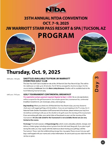 check your well-tagged golf bag with the bellman. If you are participating in the Thursday, Oct. 9