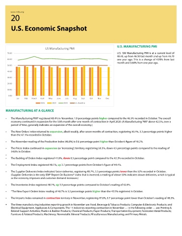 • The Manufacturing PMI® registered 48.4% in November, 1.9 percentage points higher compared to the 46.5% recorded in October. The overall