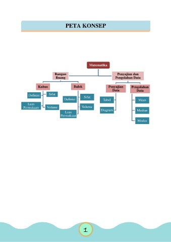 PETA KONSEP PETA KONSEP Matematika Bangun Penyajian dan Ruang Pengolahan Data Kubus Balok Penyajian Pengolahan Data Data Definisi Sifat Sifat Definisi Tabel Mean Luas Permukaan Volume Volume Luas Diagram Median Permukaan Modus 1 1