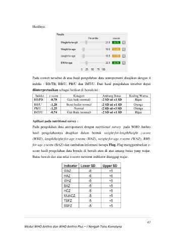 Pada contoh tersebut di atas hasil pengolahan data antropometri disajikan dengan 4