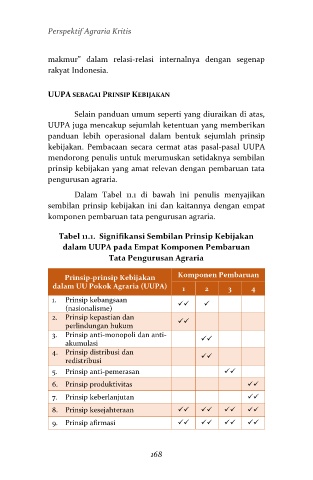 Tabel 11.1. Signifikansi Sembilan Prinsip Kebijakan